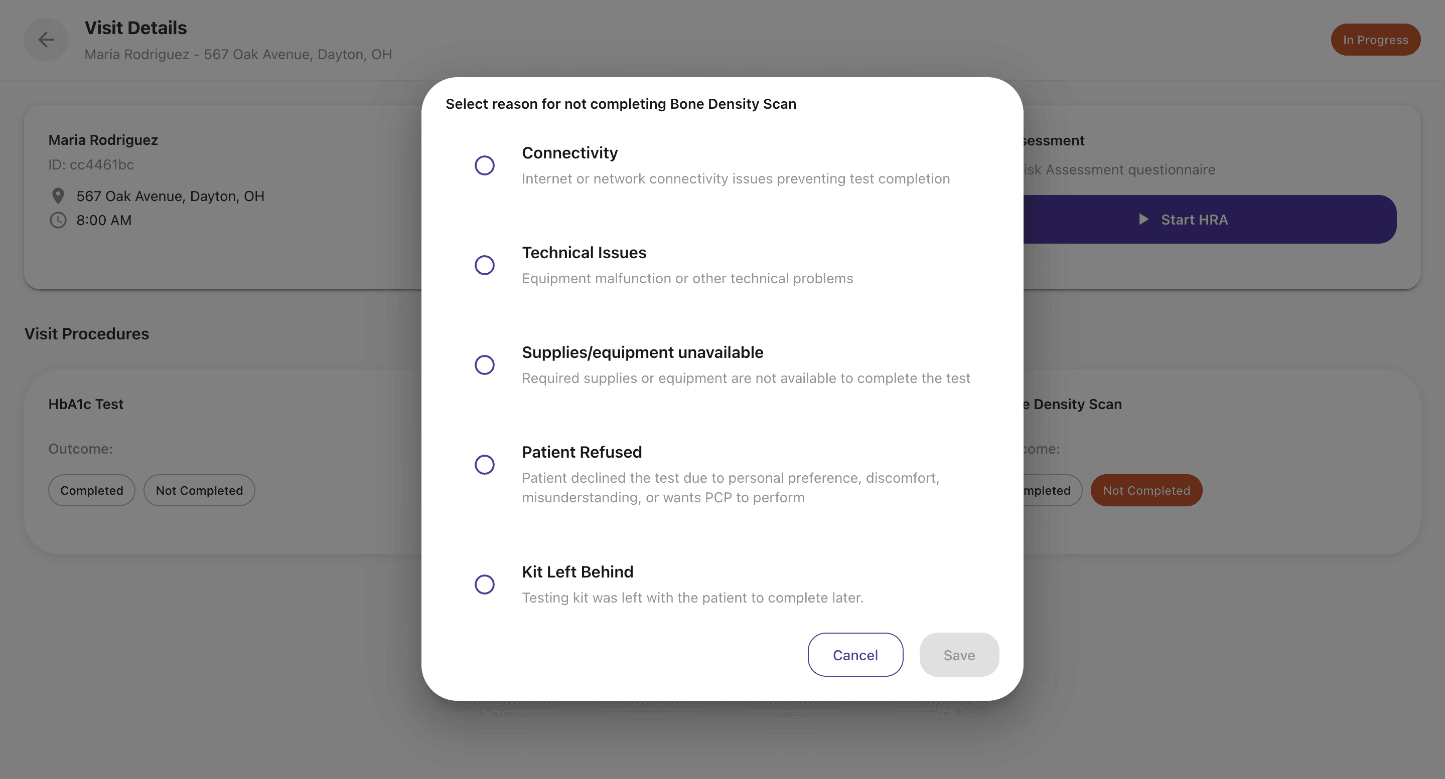Providers can record why a gap wasn’t completed during the visit. This was missing in the previous workflow and now prevents payers from seeing open gaps without context.