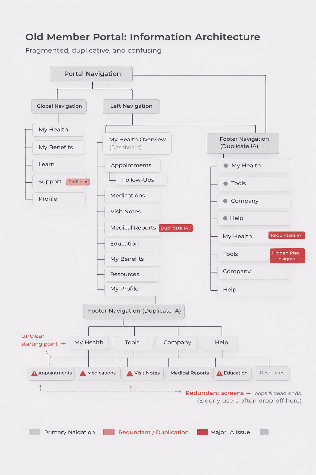 This wasn’t just a UX issue — it was a breakdown across the member journey, service workflow, and information architecture.