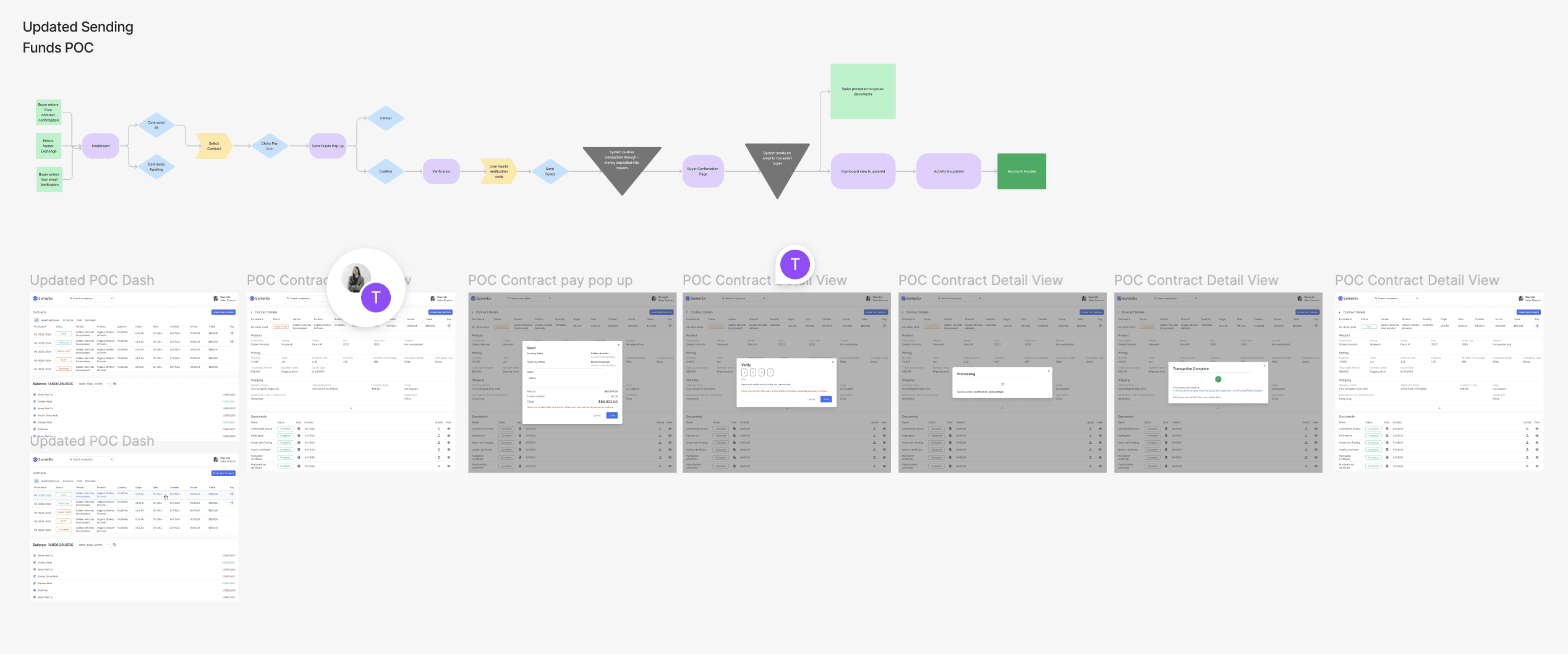 After gathering stakeholder input, I mapped out user flows to break down how people would actually use the platform. This included everything from creating and managing contracts to uploading documents and tracking transactions. I designed the flows to feel intuitive while addressing friction points early. These became the starting point for our wireframes and prototypes.