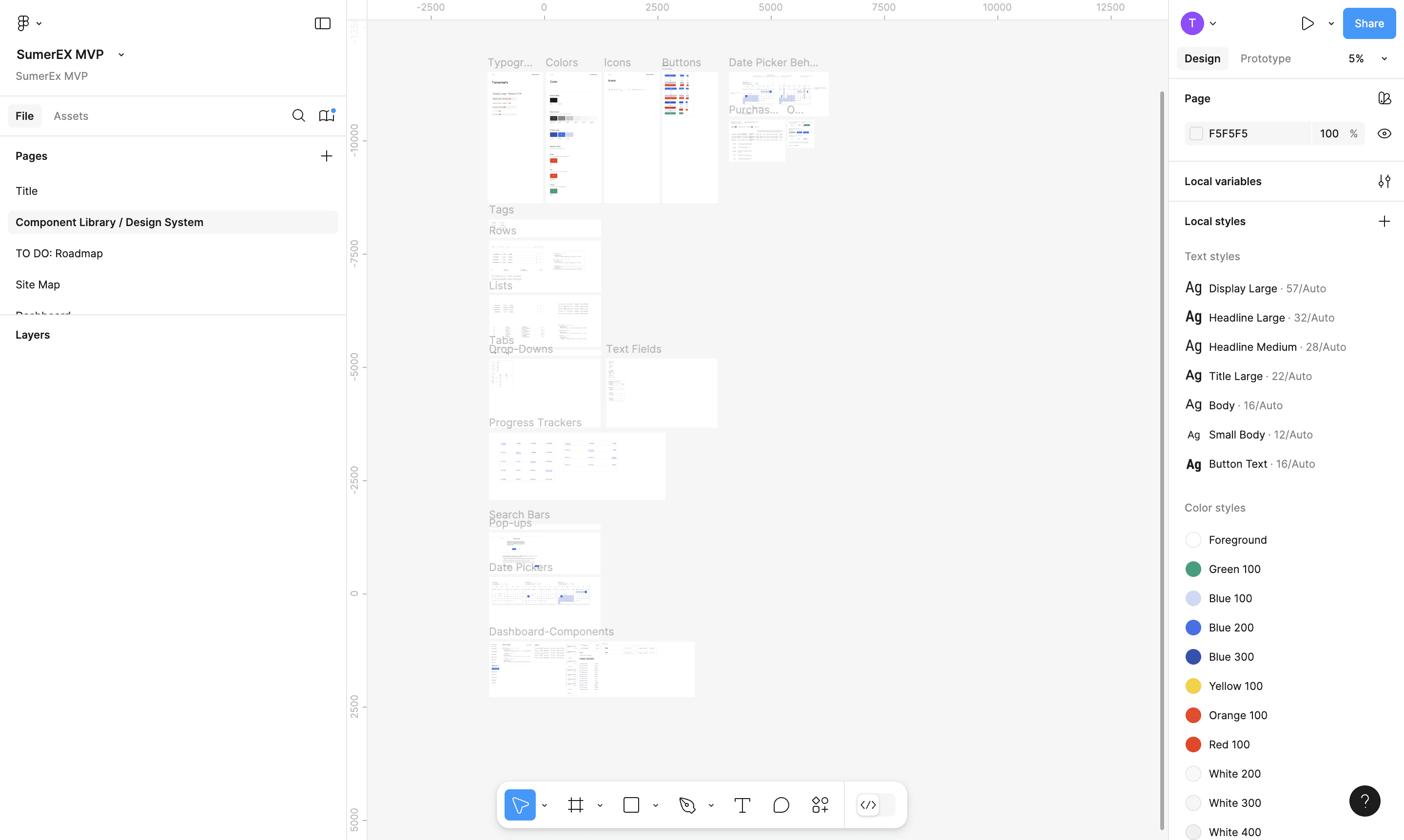 Initially, we set out to build our design system entirely from scratch, focusing on creating consistent components and patterns that aligned with SumerEx's brand and user needs. However, when the Figma Simple Design System launched, we decided to leverage its ready-made framework to accelerate development. This allowed us to streamline our process while still crafting custom components where necessary to address specific use cases for our product. This hybrid approach gave us flexibility without sacrificing quality or scalability